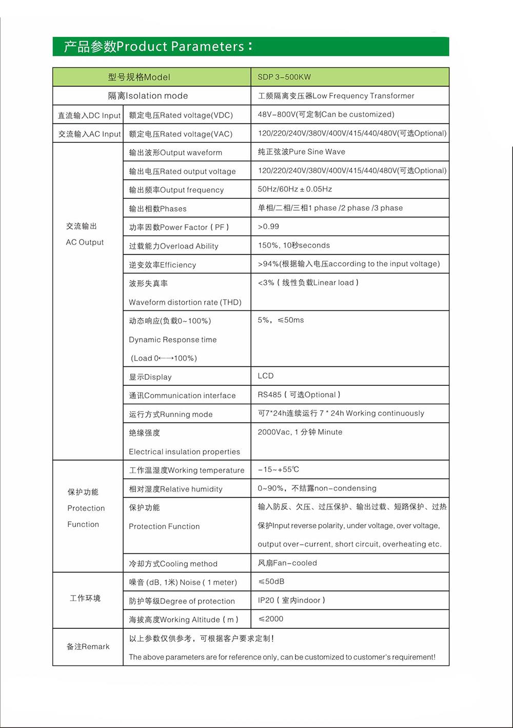 9.宽电压输入可根据客户要求定制,输入电压范围为100-400v,200-500v,300-600v或450-850vdc,适用于无备用电池的太阳能/风能系统,直接直流输入到太阳能板/风力发电机,在线切换时间为0秒;